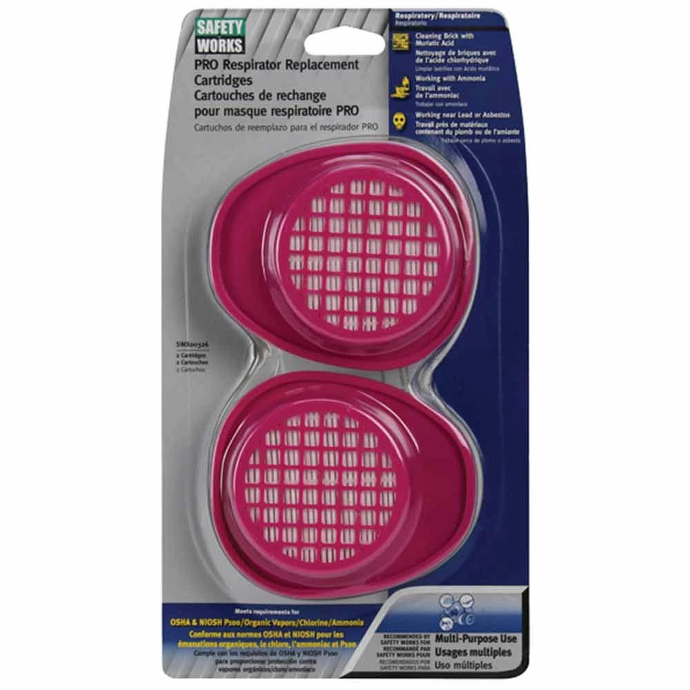 Safety Works PRO Multi-Purpose Respirator Replacement Cartridges are long-life cartridges that are approved to the NIOSH (National Institute for Occupational Safety and Health) P100 Class, so they are at least 99.97% efficient against oil- and non-oil based contaminants, and are oil-proof so they have no time use limitation. The low profile cartridges allow easy downward vision and are balanced outside of the users field of vision. These cartridges feature multiple approvals, making them extremely versatile and flexible in their application. The cartridges include integral high efficiency (99.97% against 0.3 micron particles) filters and an impregnated bed of special activated carbon.