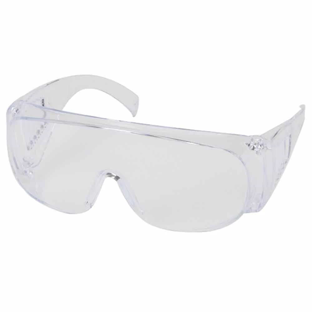 Safety Works Over-the-Glass Clear Safety Glasses fit over all prescription eyewear. The vented temples keep the user coll. They can also be worn by itself as a regular safety glass.