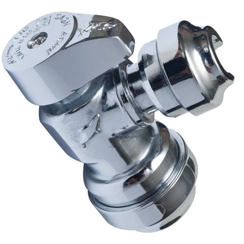 SharkBite Angle Stop Lead Free is a Push-Fit Quarter-Turn Angle Stop Valve that controls water flow to household plumbing fixtures. The Angle Stop Valve connects to incoming copper, PEX, or CPVC and allows for easy shut-off of water flow to the fixture. The 1/4 in. outlet can be used with SharkBite 1/4 in. grey PEX pipe to connect to your fixture.