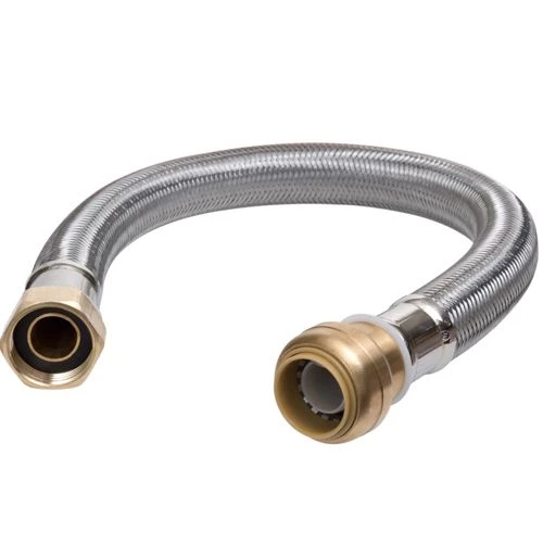 SharkBite Flexible/Braided Water Heater Connector 3/4 In. allows you to work in tight spaces and easily connect water heaters with existing pipes that don't line up. It is approved for use on electric or gas water heaters with a flue vent. The innovative design reduces the need for extra joints or fittings, allowing for faster install time.