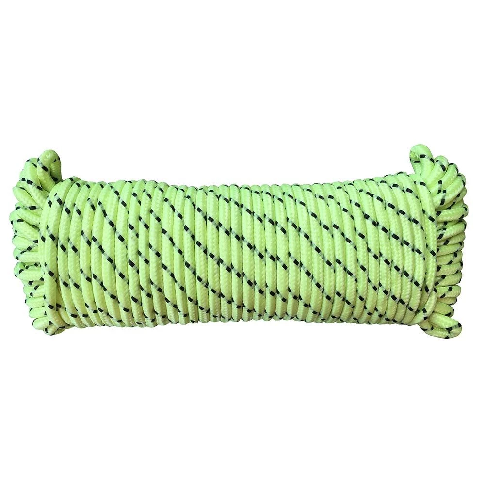 The Sportsman Series 100 Ft. Glow in the Dark Rope is designed specifically for the needs of hunters, campers, and anglers. The glow in the dark rope can more easily be seen at night while camping, or pre-dawn fishing and hunting. The tough 3/16 inch thick, weather resistant, diamond braided polypropylene rope can handle a load of up to 130 pounds. This case pack contains 12 – 100 ft. rope bundles.