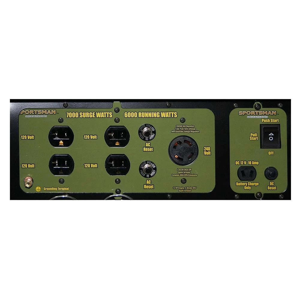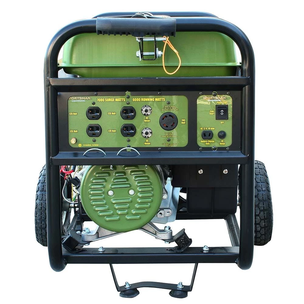 The Sportsman Series Gasoline 7000 Watt Portable Generator can power common major household appliances and power tools, and provide emergency power during blackouts. Equipped with four 120 volt outlets, a 12 volt DC outlet for battery charging, and a 120/240 volt outlet. Use this generator immediately with the recoil start or install a motorcycle battery (not included) to activate the electric start feature. With a 50% load this generator can run for 12 hours. A generator of this size is ideal for camping and running essential household appliances during power outages. It’s easy to transport and maneuver when the included wheel kit is installed. Powered by unleaded gasoline which is a convenient and easy to find fuel source. Choosing a gasoline generator like the Sportsman Series 7000 Watt Portable Gasoline Generator can ease your worry when catastrophe strikes, and make your leisure activities even more fun. EPA approved, Non-CARB compliant/Not for sale in California