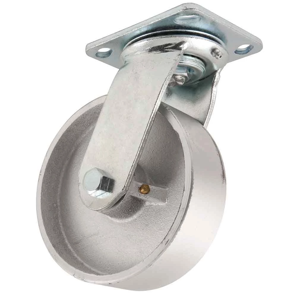Titan Heavy Duty Steel Swivel Plate Caster 6 In. is for use on concrete and is resistant to heat, oil and chemicals. This steel 4 in. caster has a load capacity of 900 lb.