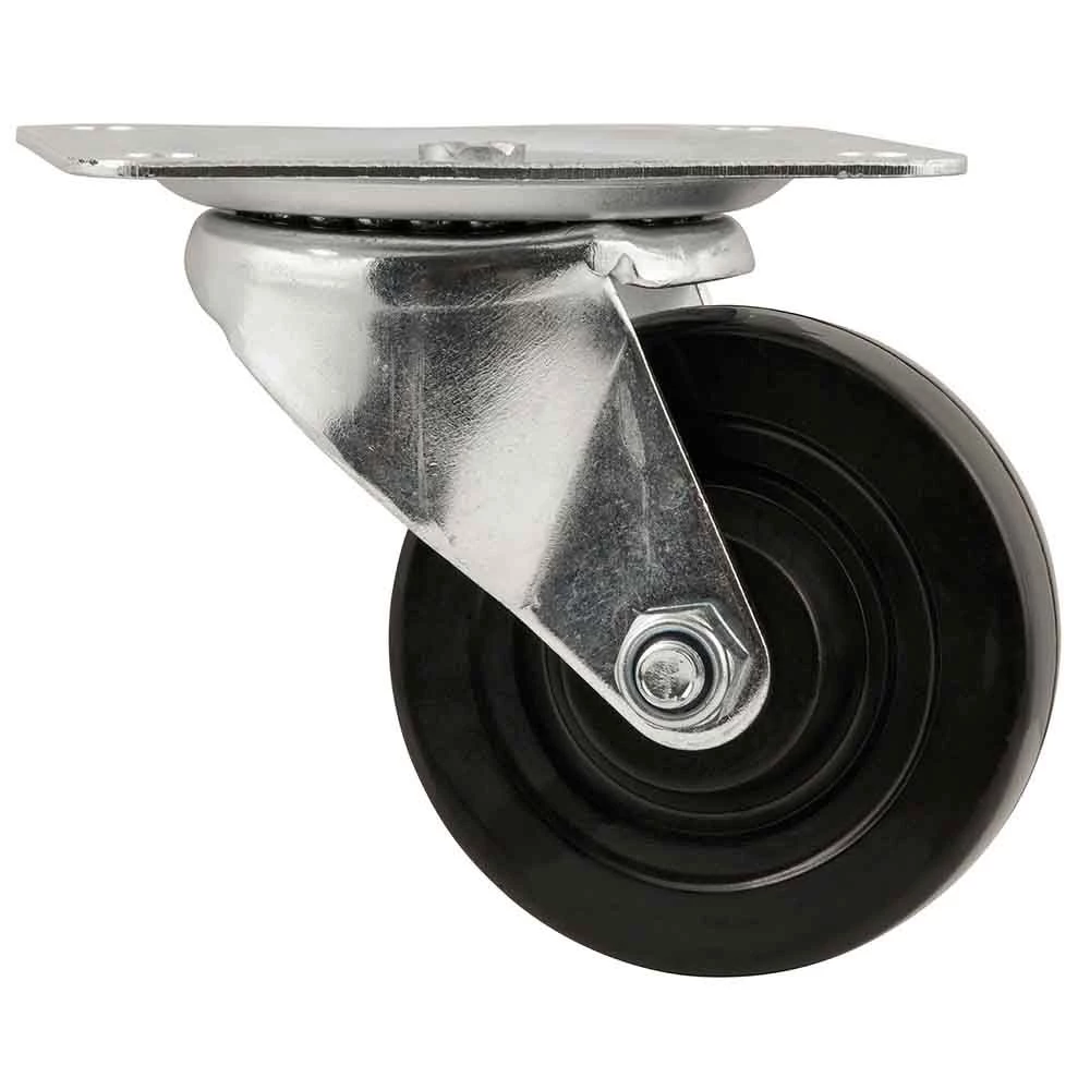 Titan Heavy Duty Swivel Rubber Caster Wheel 4 In. is safe to use on carpet, concrete, tile and wood surface. The load capacity is 300 lbs. per caster. Easy maneuverability- 360 degree swivel top plate with double ball bearings makes maneuvering even heavy loads simple . This caster is ideal for bed frames, desks, dressers, TV stands, chairs, carts, tables, stools, toolboxes, planters, and more.