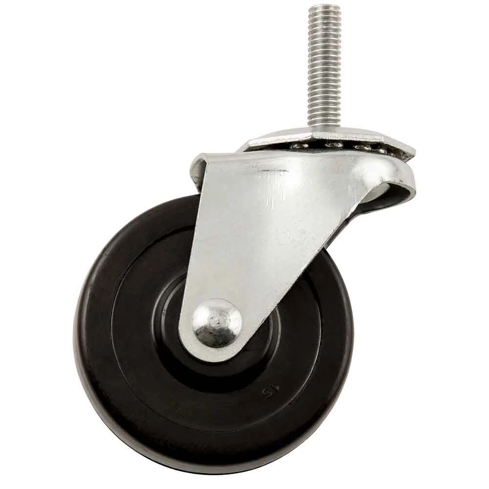 Titan Heavy Duty Threaded Stem Rubber Caster 3 In. is safe for use on carpet, concrete, tile and wood. These caster provide easy maneuverability- 360 degree swivel top plate with double ball bearings makes maneuvering even heavy loads simple. The rubber wheels provide quiet movement across surfaces. The load rating is 90 lbs. per caster wheel.