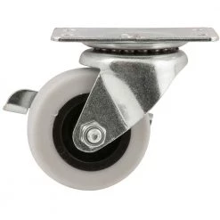 Titan Thermoplastic Rubber (TPR) 2 In. Swivel Top Plate Caster with Brake has a wheel that’s made of gray, non-marking rubber and a heavy-duty metal frame plate, this caster is durable and resilient. The swiveling plate has a total load capacity of 90 pounds. This multipurpose wheel can be installed on trolleys, TV stands, desks, carts, tables, toolboxes, chairs, bedframes, stools, dressers, and more. It has been made suitable for institutional use. These casters are safe on carpets, concrete, tiles or wood surfaces.